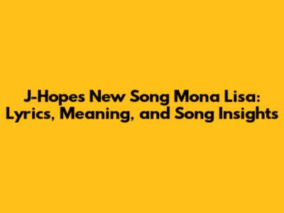 J-Hope Mona Lisa: Lyrics, Meaning, And Song Insights
