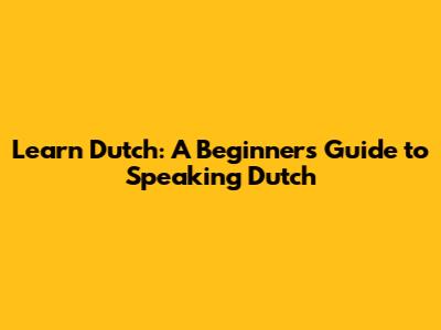 Learn Dutch: A Beginner's Guide To Speaking Dutch