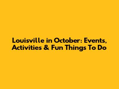 Louisville In October: Events, Activities & Fun Things To Do