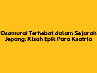 Osamurai, para ksatria Jepang yang gagah berani, telah lama memukau dunia dengan keberanian, kehormatan, dan keahlian bela diri mereka yang luar biasa. Selama berabad-abad, mereka mengukir sejarah dengan dedikasi mereka pada kode Bushido, jalan prajurit, yang menekankan kesetiaan, disiplin diri, dan penguasaan seni bela diri. Dalam artikel ini, kita akan menjelajahi beberapa Osamurai terhebat dalam sejarah Jepang, mengungkap kisah-kisah mereka yang menginspirasi, dan menyelami warisan abadi mereka.