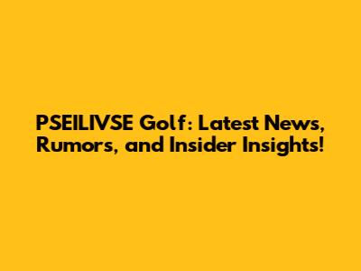 PSEILIVSE Golf: Latest News, Rumors, And Insider Insights!