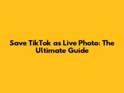 Save TikTok As Live Photo: The Ultimate Guide