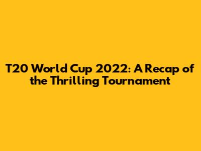 Thanks for joining me on this recap of the T20 World Cup 2022. Until next time, keep the passion for cricket alive!